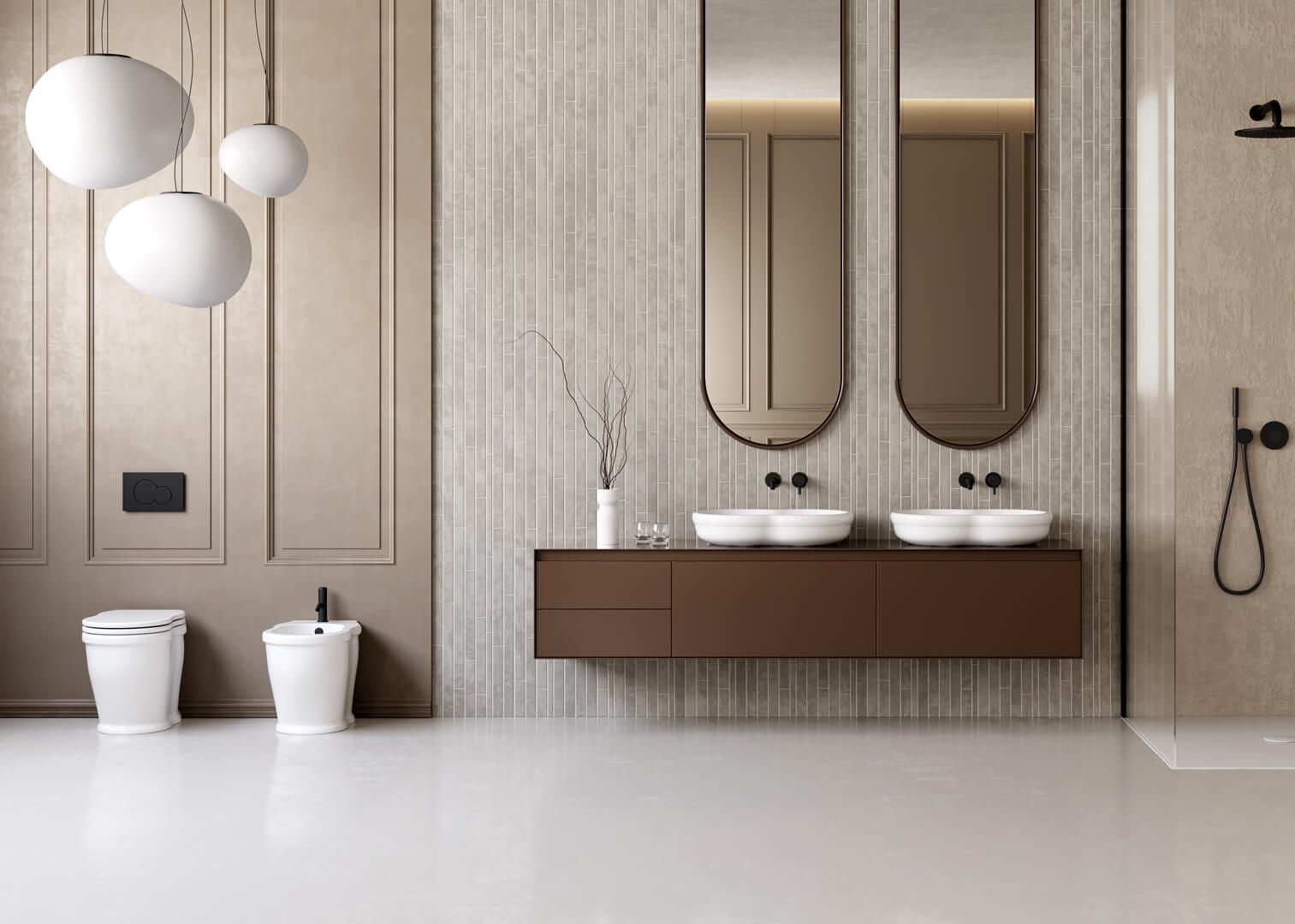 C’è la solidità della ceramica, che conferisce stabilità e ordine agli spazi. La naturalezza del legno, che porta con sé calore, movimento e la traccia del tempo. La lucentezza del metallo, che introduce riflessi e contrasti, dando ritmo alle composizioni. E la morbidezza delle resine, che avvolgono gli ambienti con superfici continue, fluide, moderne.